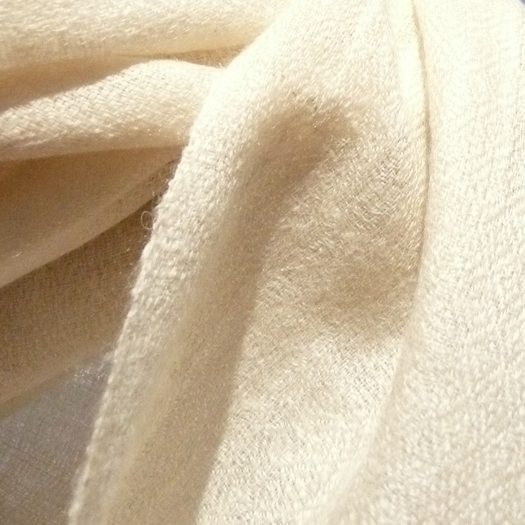 Stola aus 100% Cashmere, nude. So fein und zart, dass Sie nur von einem Hauch von Stoff umkuschelt werden, so hochwertig, dass Sie wohlige Wärme verspüren. Die Stola aus 100% Cashmere ist ein Ringschal, das heißt Sie können die Stola durch einen Ring hindurch ziehen. Die Fransen sind offen.